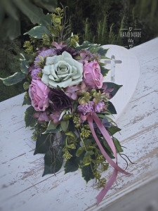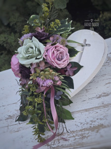 Drevenne srdiečko na podstavci. Srdiečko je v neutrálnych farbách, vhodné pre ženu a aj pre muža.