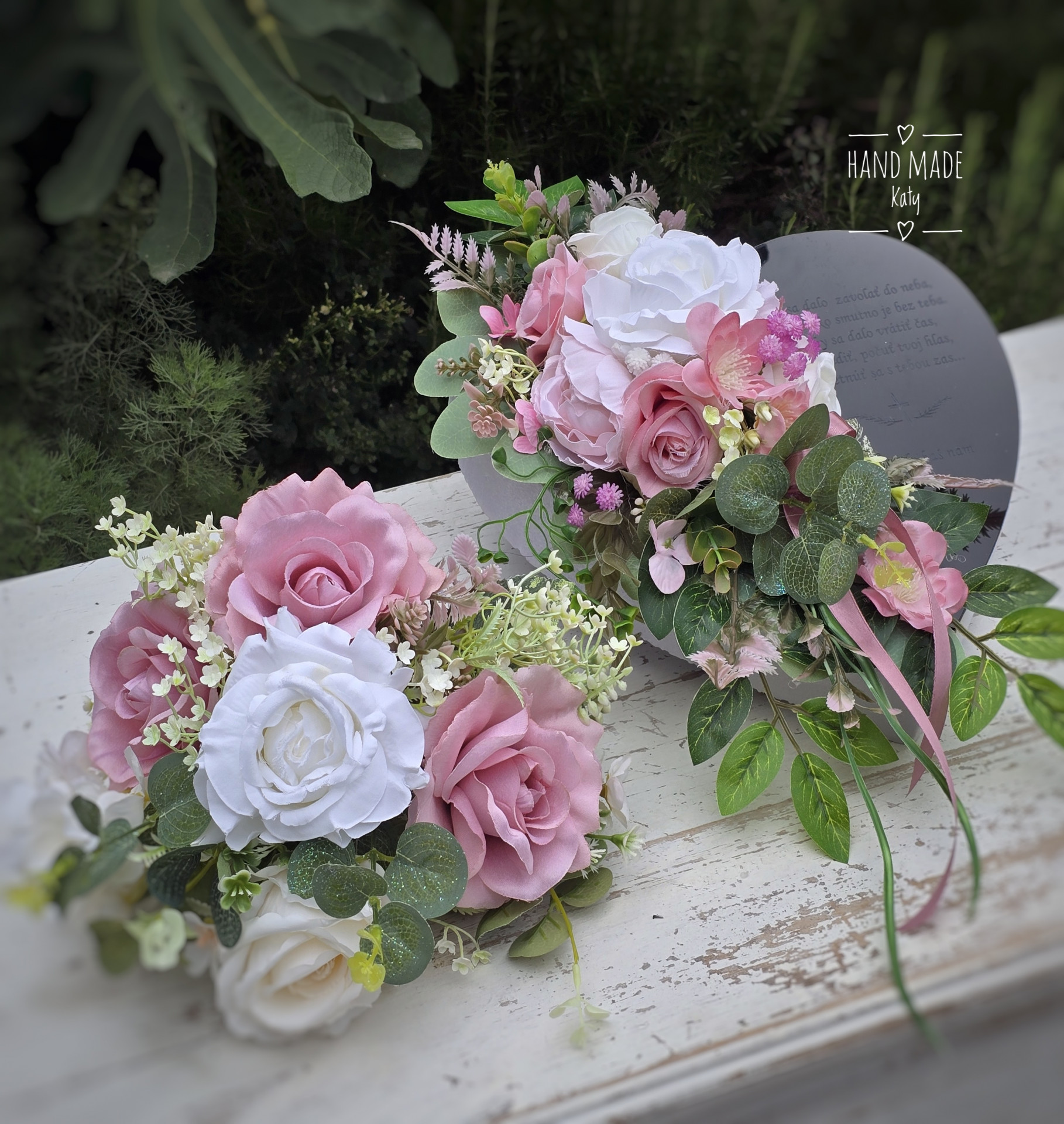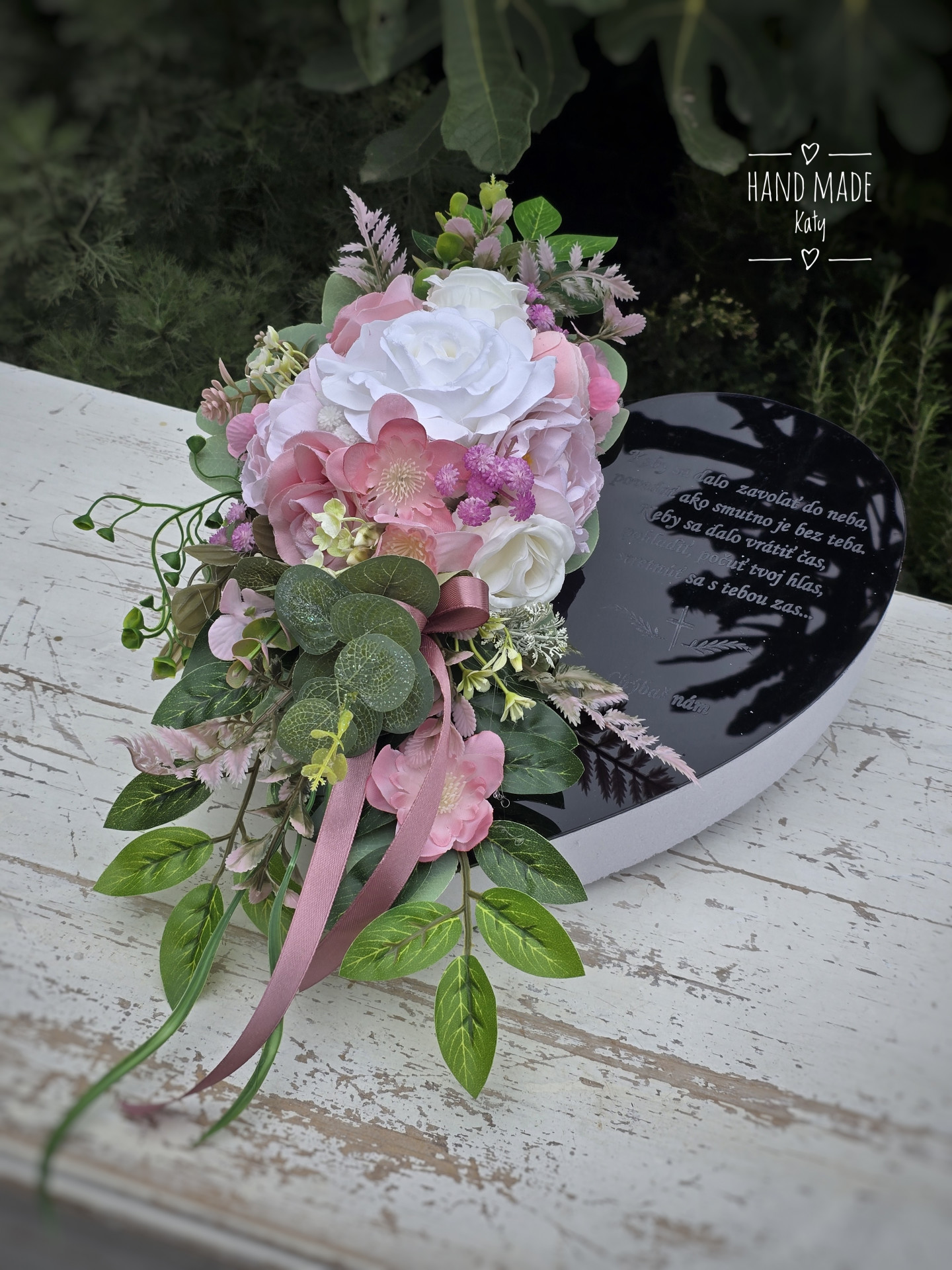 Srdiečko na hrob s podstavcom. Srdiečka sú zaťažené betónom. S gravirovanym nápisom.