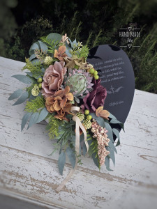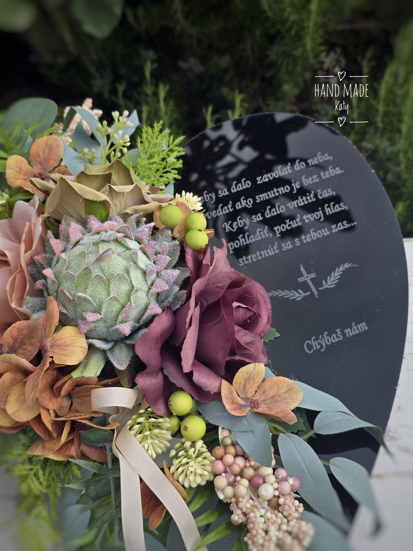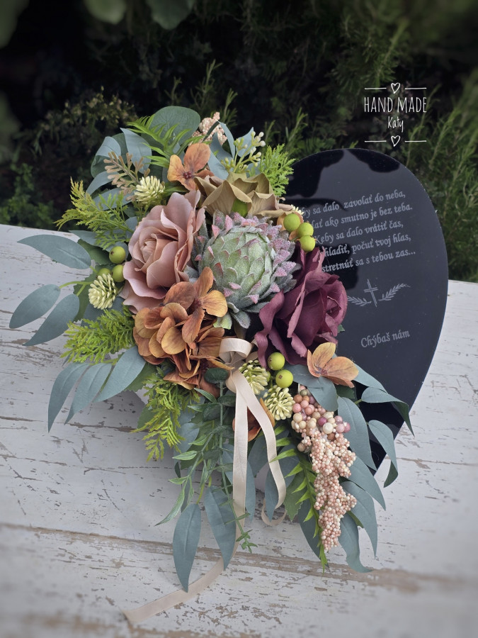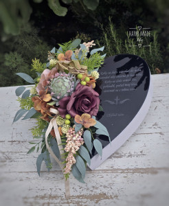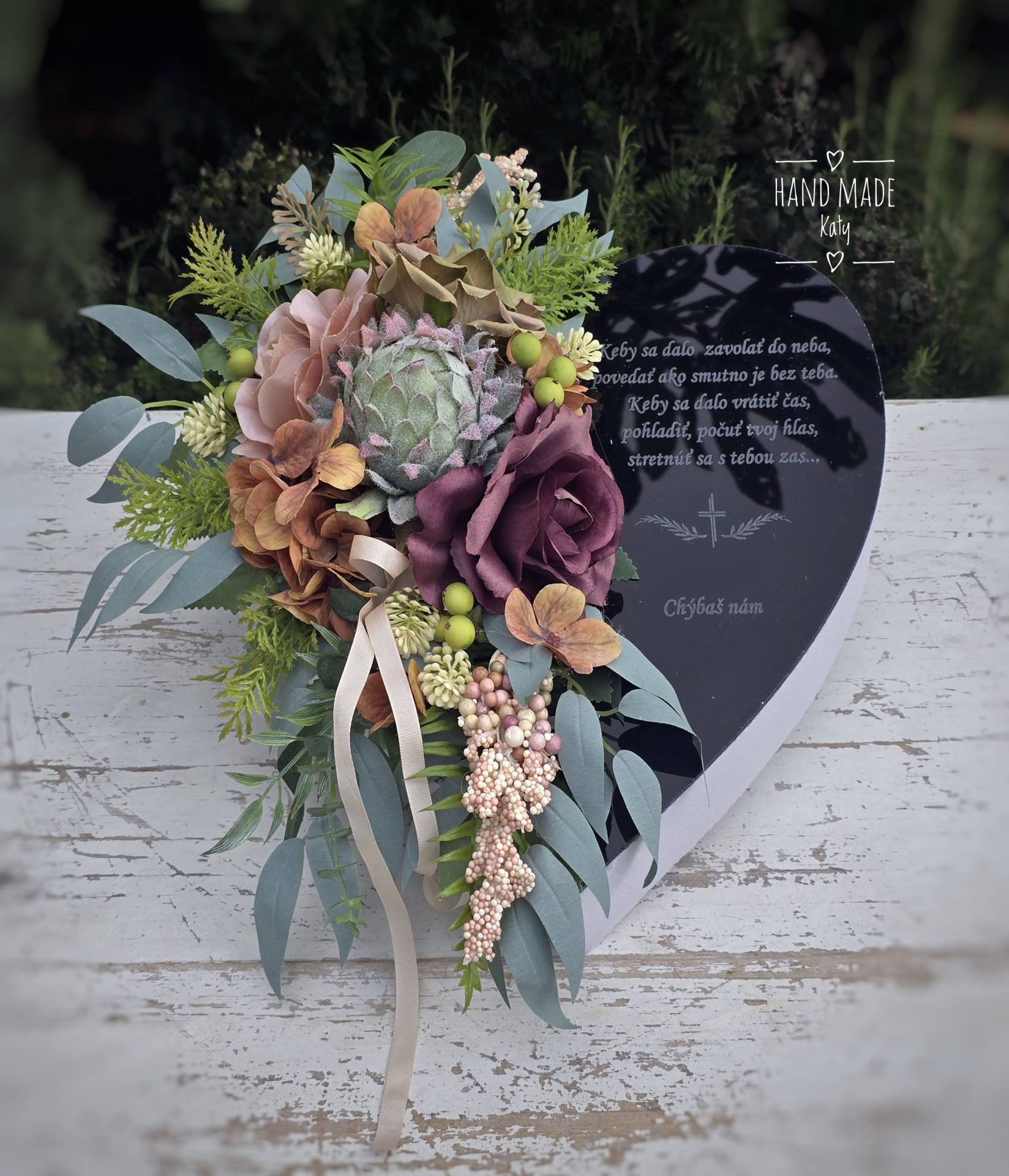 Srdiečko CHÝBAŠ NÁM na hrob s podstavcom. Srdiečka sú zaťažené betónom. S gravirovanym nápisom. Srdiečko je v neutrálnych farbách, vhodné pre ženu a aj pre muža.