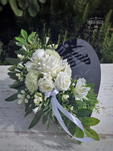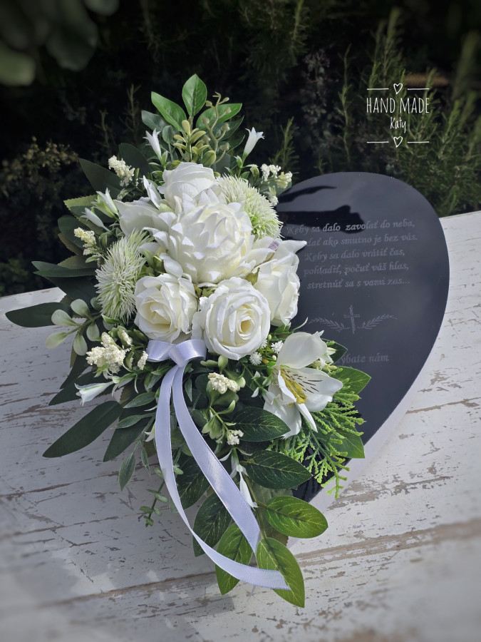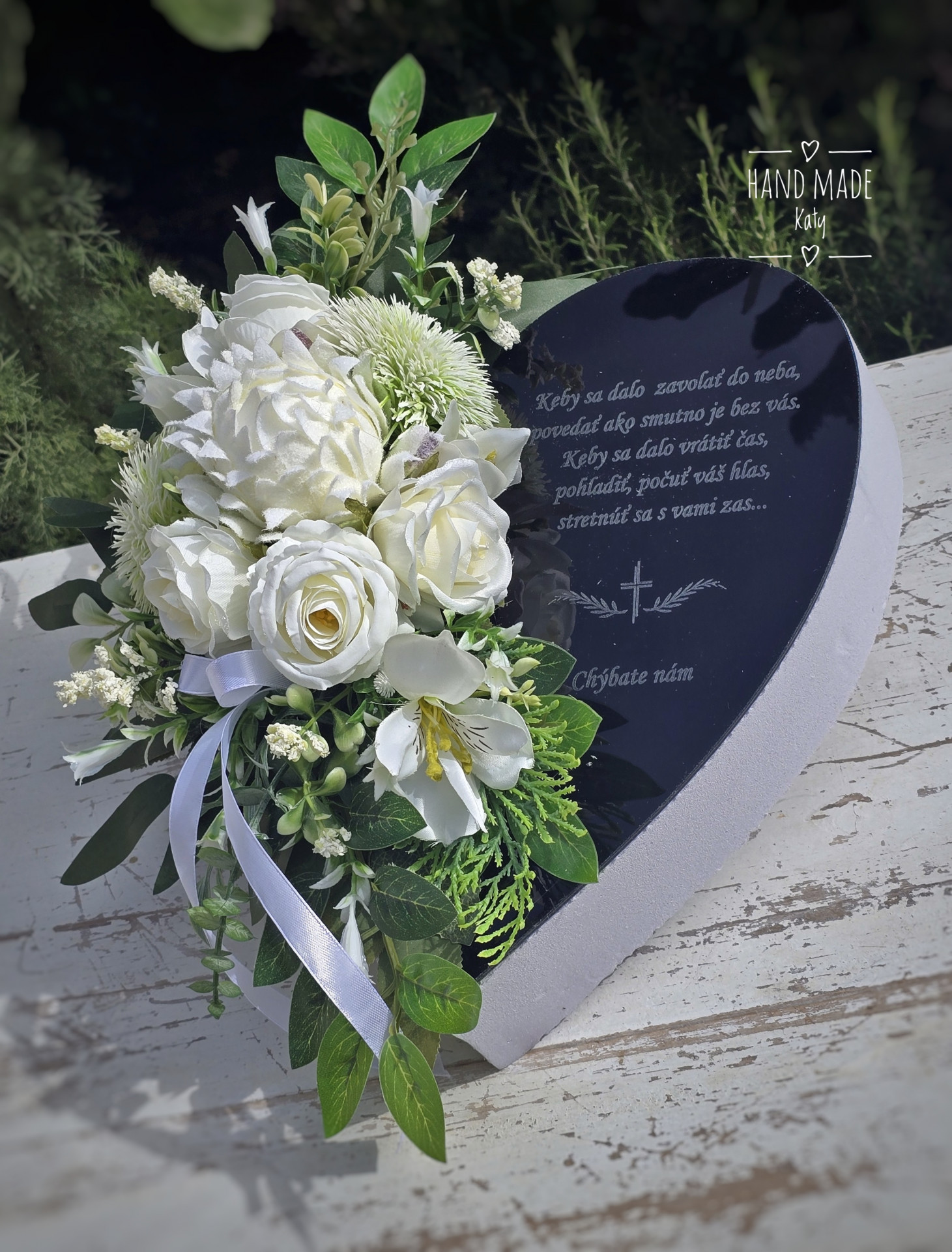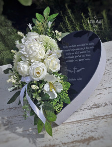 Srdiečko CHÝBATE NÁM na hrob s podstavcom. Srdiečka sú zaťažené betónom. S gravirovanym nápisom. Srdiečko je v neutrálnych farbách, vhodné pre ženu a aj pre muža.