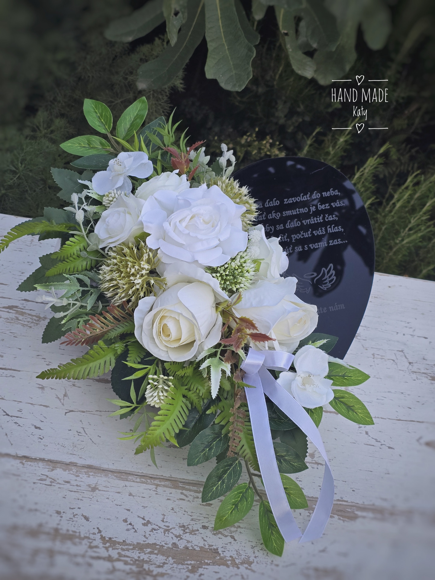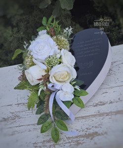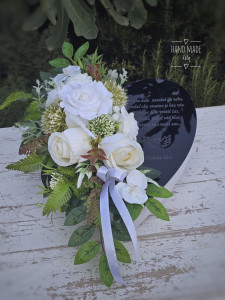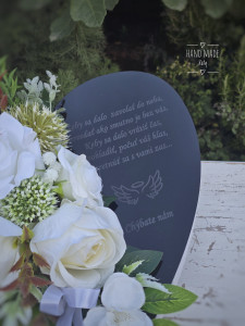 Srdiečko CHÝBATE NÁM na hrob s podstavcom. Srdiečka sú zaťažené betónom. S gravirovanym nápisom. Srdiečko je v neutrálnych farbách, vhodné pre ženu a aj pre muža.