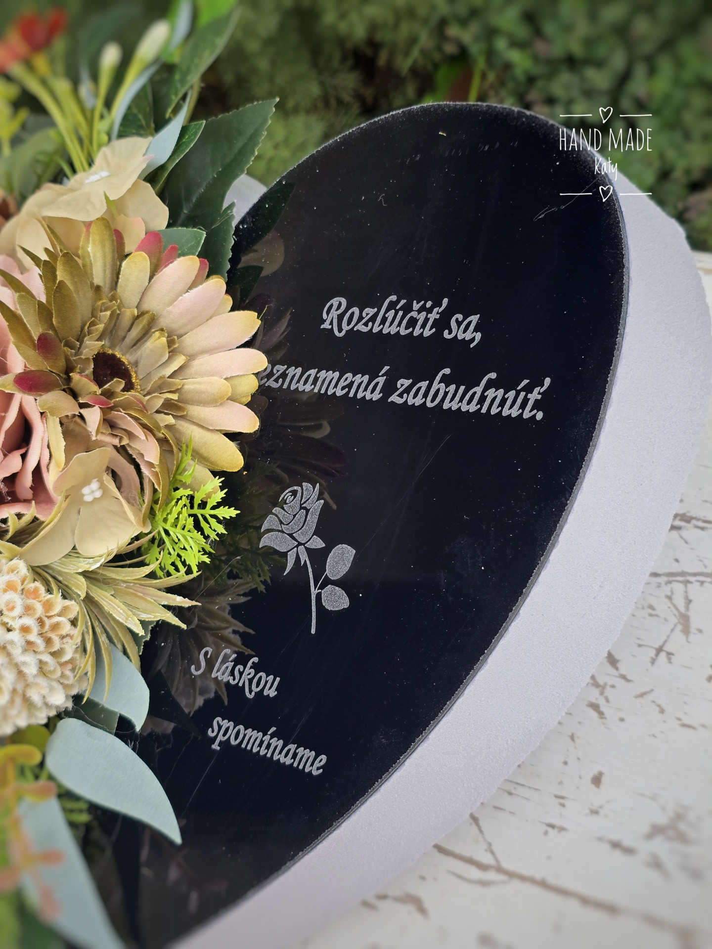 Srdiečko na hrob s podstavcom. Srdiečka sú zaťažené betónom. S gravirovanym nápisom.