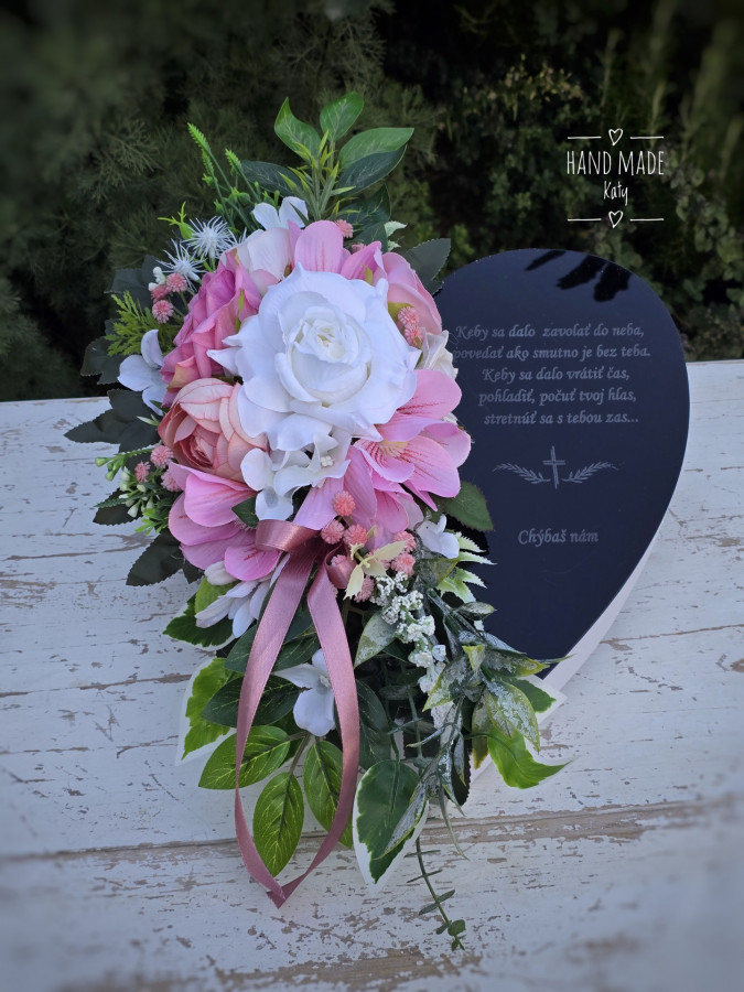 Srdiečko na hrob s podstavcom. Srdiečka sú zaťažené betónom. S gravirovanym nápisom.