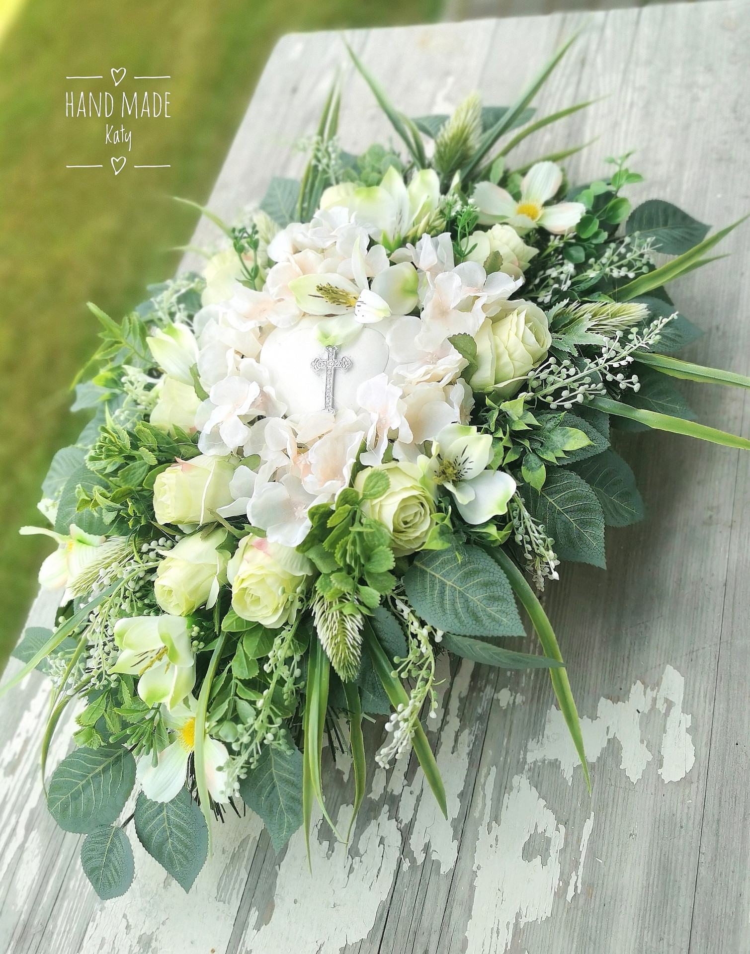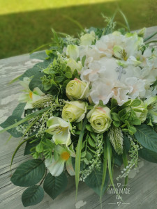 Ťažký, podlhovasty aranžmán na hrob v jemných farbickach so srdenkom. Rozmery 65*40cm. Materiál plast VYPREDANÉ Cena vrátane DPH: 43.90 € Do košíka