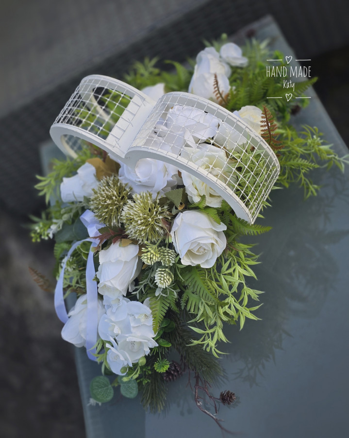 Rozmery aranžmánu 64×33cm a výška 24cm